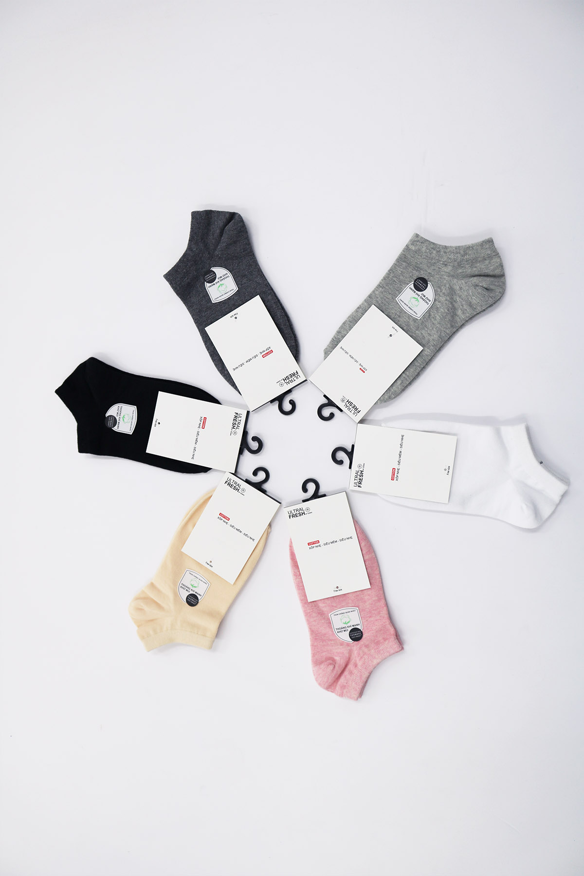 Chất liệu :Sợi cotton cao cấp, mềm mại, thoáng khí và thấm hút mồ hôi tốt. Cotton tự nhiên giúp đôi chân luôn khô ráo và thoải mái suốt cả ngày.Pha thêm một chút sợi co giãn (ví dụ: spandex) để tăng độ đàn hồi, ôm chân nhưng không gò bó.
